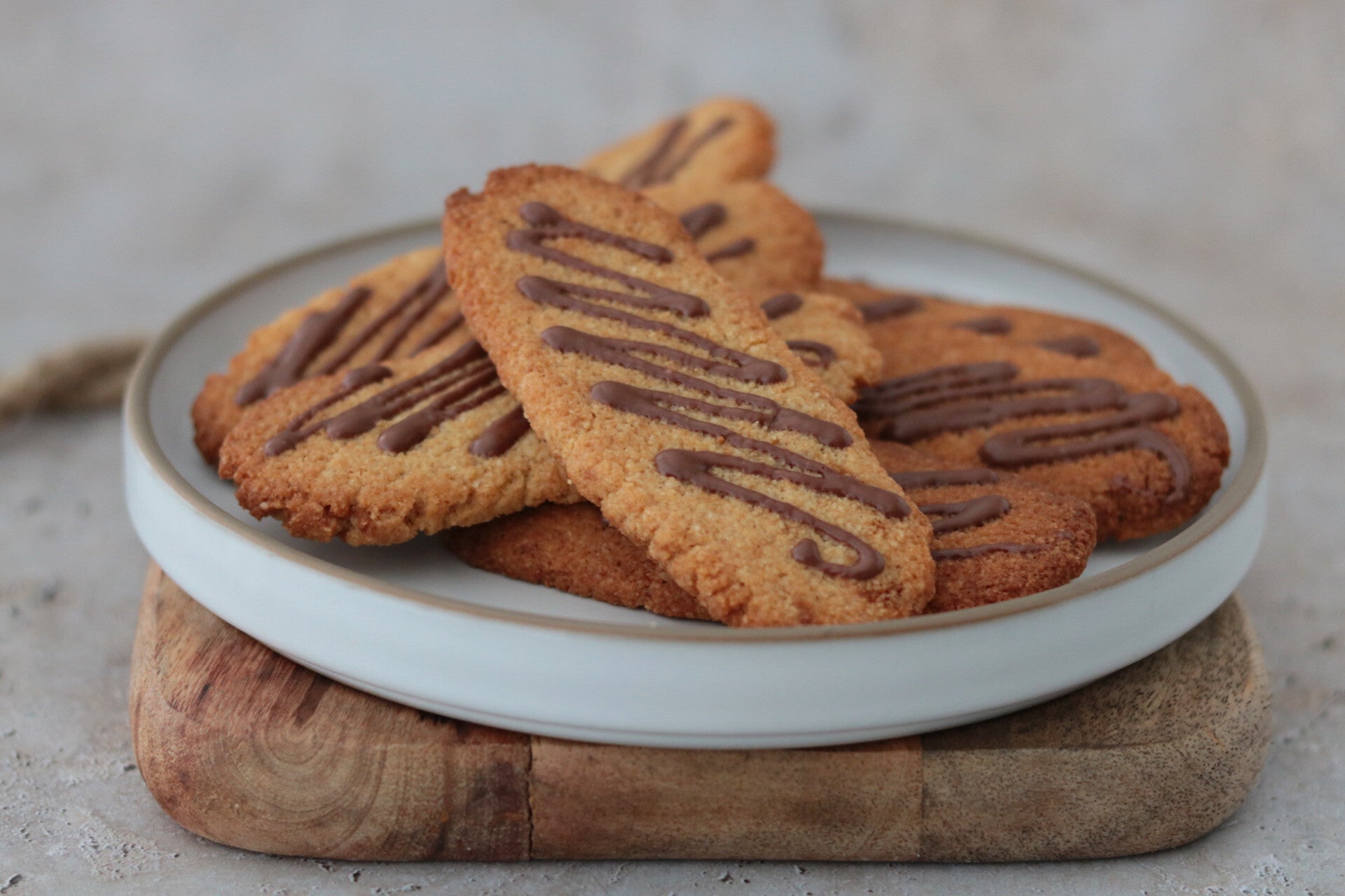 Kattentongen. Heerlijke koolhydraatarme, glutenvrije en suikervrije knapperige koekjes met chocolade drizzle. Vers gebakken uit Oanh's Kitchen. Koolhydraatarm, glutenvrij en met liefde gemaakr met ingrediënten uit de webshop!